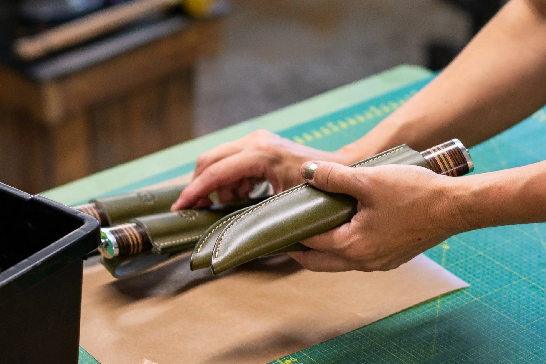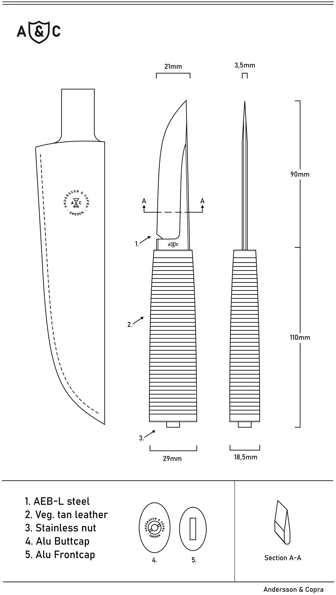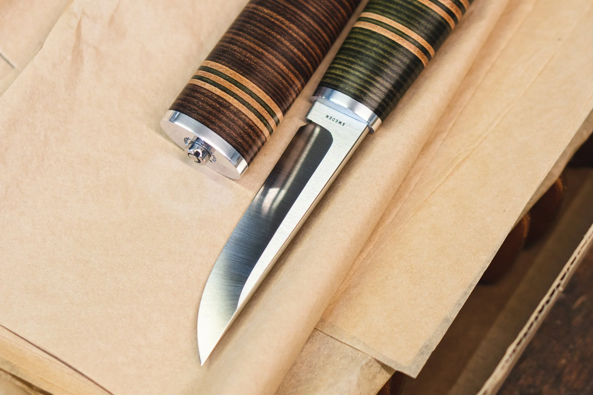 We make the sheaths as well as the handles using vegetable tanned leather from the old Swedish Tärnsjö Garveri. A local tannery known for making the highest quality leather for fashion and furniture industry, still using the same environmentally friendly process of vegetable tanning since 1873.